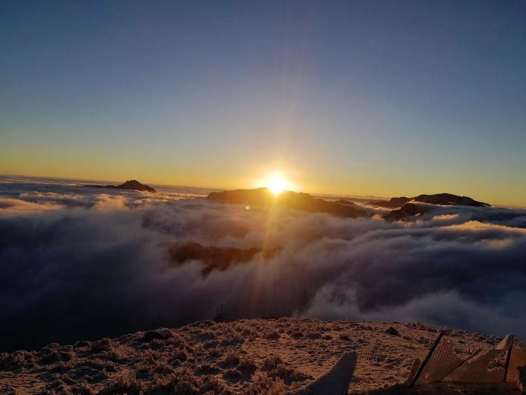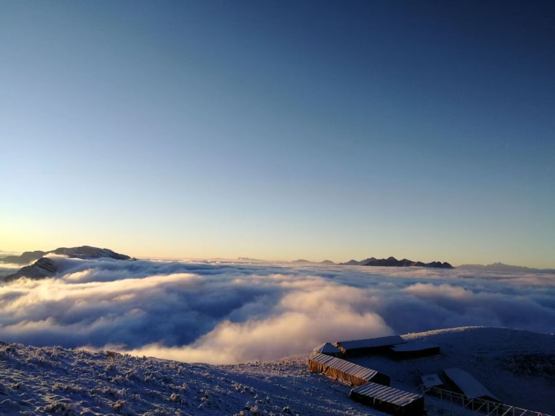早起(根据领队通知为准)以贡嘎为代表的大雪山山脉和五色山系的田海子雪山,这一众高俊的山峰依次排开,由红转金出现在眼前,是何等的壮观与惊艳,东观云海、日出、西照、贡嘎金山,霞光万顷,四面云海、四面环山;根据领队安排的时间集合徒步下山,原路返回中转车乘车点,预计19点左右到达成都